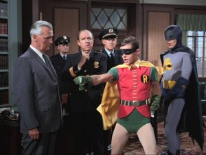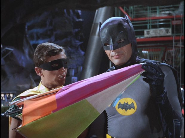 Batman-TV-Serie von 1966 bis 1968 mit Adam West und Burt Ward. 1966 erschien ein Kinofilm. Ab 2013 wurde das Konzept als Comic-Serie fortgesetzt, 2016 und 2017 folgten zwei Animationsfilme.