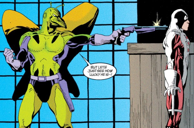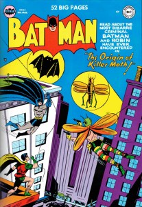 1951 war für Batman das Jahr der Motte. Gleich drei Mal nämlich traf er auf einen neuen Gegner: Killer Moth! Der bizarrste Kriminelle, dem Batman und Robin je begegnet seien, heißt es auf dem Cover. Und das kam so: Ein verurteilter Verbrecher kommt im Knast beim Lesen von Berichten über Batman auf die glorreiche Idee, dem Vorbild zu folgen – nur dass er nicht Recht und Ordnung aufrecht erhalten, sondern dem Verbrechen helfen will (The Origin of Killer Moth, Batman #63, 1951). Dass der Joker bereits fünf Jahre vor ihm auf die Idee gekommen und damit gescheitert ist, scheint ihm entgangen zu sein.
