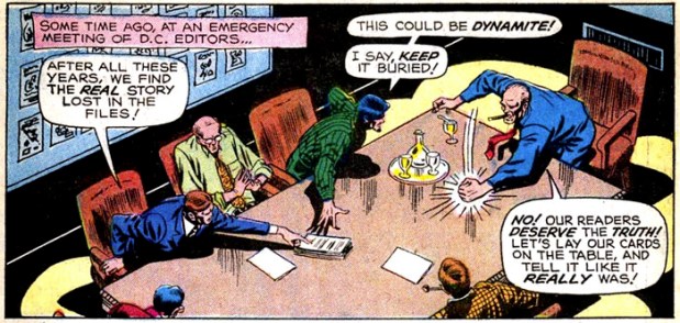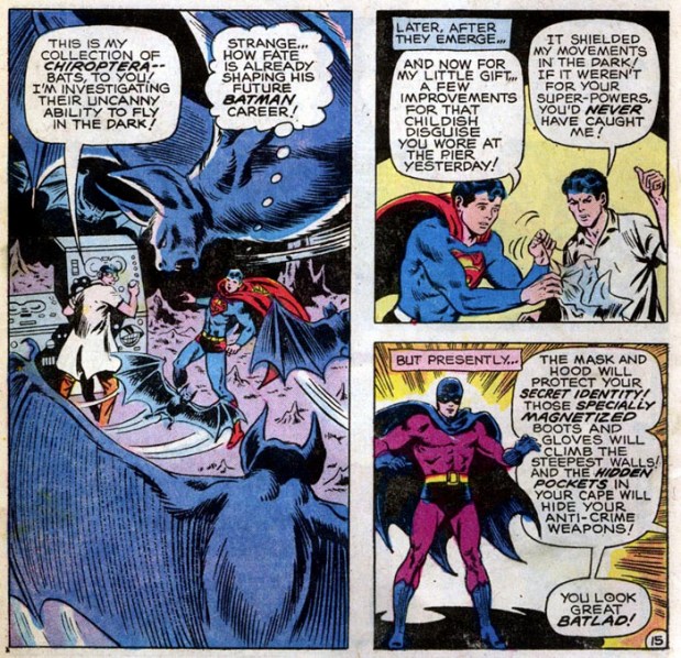 Also zurück zum Plot, der am Ende auch nicht zu kompliziert sein darf, denn immerhin muss nach zwölf Seiten Schluss sein: Als auch Robin auf schmerzhafte Weise erfahren muss, mit wem er es zu tun hat, befreit sich Bruce, steigt ins Batman-Kostüm und rettet den Tag. Killer Moth wird von Casey mit dem Maschinengewehr verwundet – und zwar so schwer, dass nicht nur plastische Chirurgie nötig ist, sondern auch ein Teil seines Gehirns entfernt werden muss. Praktischerweise der Teil, der fürs Gedächtnis zuständig ist.