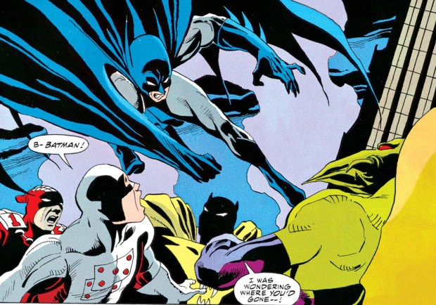 Ein paar Wochen später knockt er Bruce nach einem Benefizboxen aus und sperrt ihn in einen verlassenen Banktresorraum. Der Killer in der Motte scheint nachgelassen zu haben. Als neuer Bruce täuscht er sogar Dick Grayson. Als der ihn in die Bathöhle führt, ist das Geheimnis raus. Der Schurke spielt mit und steigt ins Batman-Kostüm. Zusammen nehmen sie es mit der Whitey Casey Gang auf. Mit der hat Killer Moth noch eine Rechnung offen, denn die wollte nie seine Dienste in Anspruch nehmen. Jetzt versucht er sich in einem Doppelspiel: Robin macht Van Cleer vor, Casey zu jagen, während er Casey gegenüber den Retter als Killer Moth spielt. Und wieder fragt man sich: Warum nicht einfach Bruce Wayne töten und alle Probleme auf einmal lösen? Weil das zu einfach wäre.