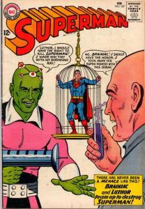 Zusammen locken sie Superman in eine Falle: Sie berauben ihn seiner Kräfte, verkleinern ihn und sperren ihn in einen Käfig. Allerdings gehen sie dabei noch schlampiger vor als Superman mit seinem Knast: Sie sperren nicht einmal die Tür zu. Superman haut ab, startet eine von Luthors Raketen und ruft so Hilfe aus der Flaschenstadt Kandor herbei. Brainiac versetzt ihn dafür ins Koma, kann jedoch nicht verhindern, dass eine Horde kleiner Supermänner die Schurken überwältigt, sie verkleinert und sie in Kandor vor Gericht stellt.