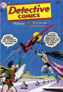 Während alle Aufmerksamkeit abgelenkt ist, schnappen sich Gauner die Perlenketten der Damen. Zum Glück hat Reporterin Vicky Vale zufällig ein Bild vom Verdächtigen geschossen. Doch Batman kann der Sache nicht nachgehen, denn wenn Vicky seinen kaputten Arm sieht, erfährt sie seine Geheimidentität. Was tun? Ein Ersatz muss her. Wäre das die Serie World’s Finest, würde Batman Superman um den Gefallen bitten. Aber stattdessen holt man noch weiter aus: Warum nicht den Batman der Zukunft fragen?