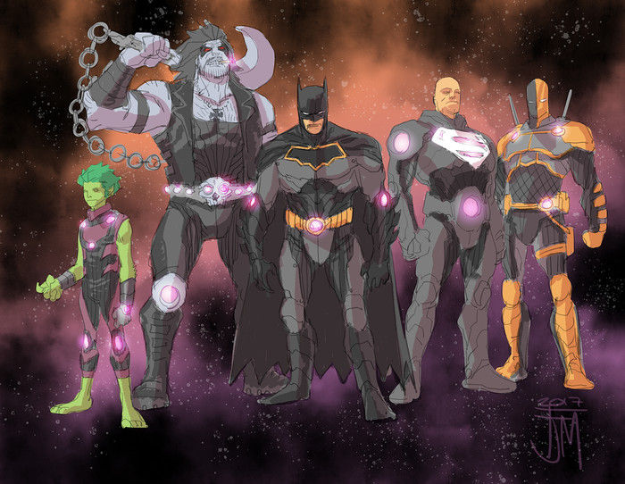 Mit Mash-ups bekommen es die World’s Finest in der gleichnamigen Geschichte zu tun: Sie finden sich in einer Welt wieder, in der die Mitglieder der Justice League mit denen der Titans verschmolzen sind: Night Lantern, Aquaborg, Hawk Beast etc. Das Ganze erinnert an die Amalgam-Experimente mit den Marvel-Helden in den 90ern (Batman verschmolz mit Wolverine zu Dark Claw), aber wenn die Schurken Lex Joker, Doomstroke und Brainycat auftauchen, erscheint das Konzept so beliebig wie albern.