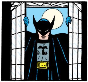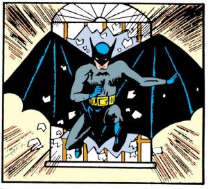 Erstmals sehen wir Batman bei der Vorbereitung: Er nimmt Handschuhe und Knieschoner mit Saugnäpfen mit, um die Wand hochgehen zu können, außerdem steckt er Tränengas in seinen Gürtel, der zum ersten Mal eine Funktion bekommt. Die Leser bekommen alles gezeigt: Wie Batman in seinem roten Auto hinfährt, wie er es an einem abgelegenen Ort parkt, wie er sich mit einem Lasso am Haus hochzieht und dann weiter hinaufkrabbelt – wie eine Riesenfledermaus, heißt es, aber es wirkt eher wie eine Spinne.