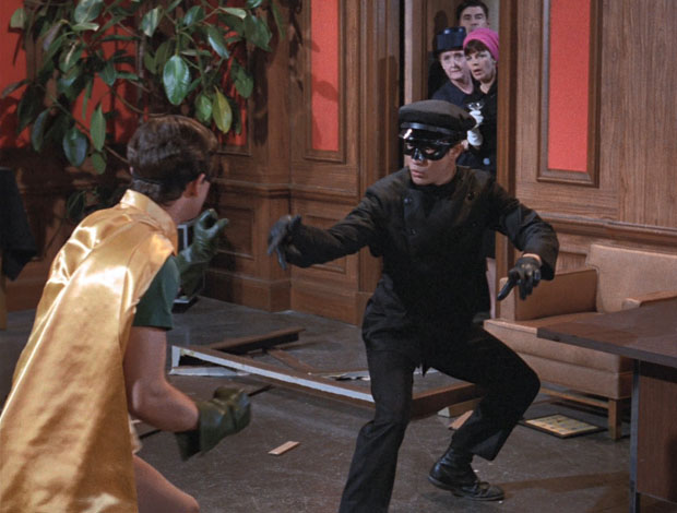 Selbst in der letzten Schlacht ist nicht klar, wer Freund und Feind ist: Batman und Robin prügeln sich nicht nur gegen die Schurken, sondern auch gegen Green Hornet und Kato. Als Robin von Bruce Lee umgekickt wird, ist Robin froh, dass er nicht jede Woche gegen ihn antreten muss.