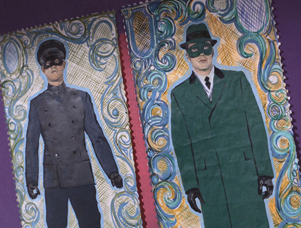 Batman und Robin helfen Green Hornet und Kato aus der Klemme, als Colonel Gumm sie in eine Briefmarken-Maschine steckt. Zuvor sieht es nicht gut für sie aus, als Gumm zwei lebensgroße Briefmarkenversionen von ihnen aus dem Drucker holt. Später verkloppen sie Gumm und seine Schergen. Bruce Lee hebt das Niveau des Kampfes natürlich gewaltig. Dafür kann Batman mit Klugscheißerei punkten, indem er erklärt, welches Gerät die Bilder von Green Hornet und Kato produziert hat. Batman zeigt sogar eine neue Fähigkeit: Er kann die Farbe Pink riechen.