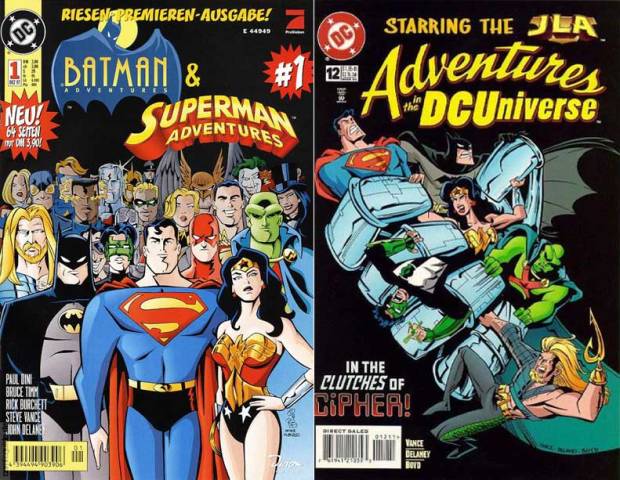 Zuerst ist Flash dran – gegen einen Schrumpfstrahl. Dann Aquaman und J’onn J’onzz – gegen einen Strahl, der aus Mehrzellern Einzeller macht. Schließlich Batman, Wonder Woman und Green Lantern gegen gelbe Blasen. Damit die Sache spannender wird, macht Xotar einen auf Riddler, indem er den Ort der Duelle nur in Rätseln verrät. Das bringt den armen Flash dazu, erstmal einen Umweg über die Bücherei zu nehmen … Jedes Mal kann die JLA die vermeintlichen Superwaffen ganz einfach ausschalten.