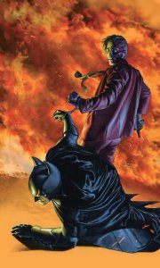 Und das gelingt ihm auch. Batman lockt Superman mit dem Bat-Signal an und versucht, ihn auszuschalten. Dabei geht er so rabiat und großmäulig wie ein Straßenschläger vor. Es ist mehr der Dunkle Ritter aus All-Star Batman, gewürzt mit dem aus The Dark Knight Strikes Again („striking terror – best part of the job“). Superman hält allem, was Batman gegen ihn auffährt (alles außer Kryptonit), ungerührt stand. Selbst den Beleidigungen. Und als er sich revanchieren will, taucht aus dem Nichts Wonder Woman auf …